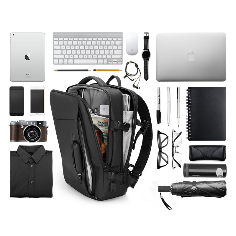 17" LAPTOP COMPATIBLE: This backpack with an interior padded pocket will give you enough space to pack all your electronic devices and daily necessities. Doesn't matter which laptop brand is your favorite, this backpack is suitable for all 17-inch laptops on the market including 11-inch iPads as well. Enough space to pack all your electronic devices and travel accessories for your business trip. Shoulder strap card pocket, hidden anti-theft back pocket, comfortable handle, side pocket, suitcase mount or triangular fixing belt.
